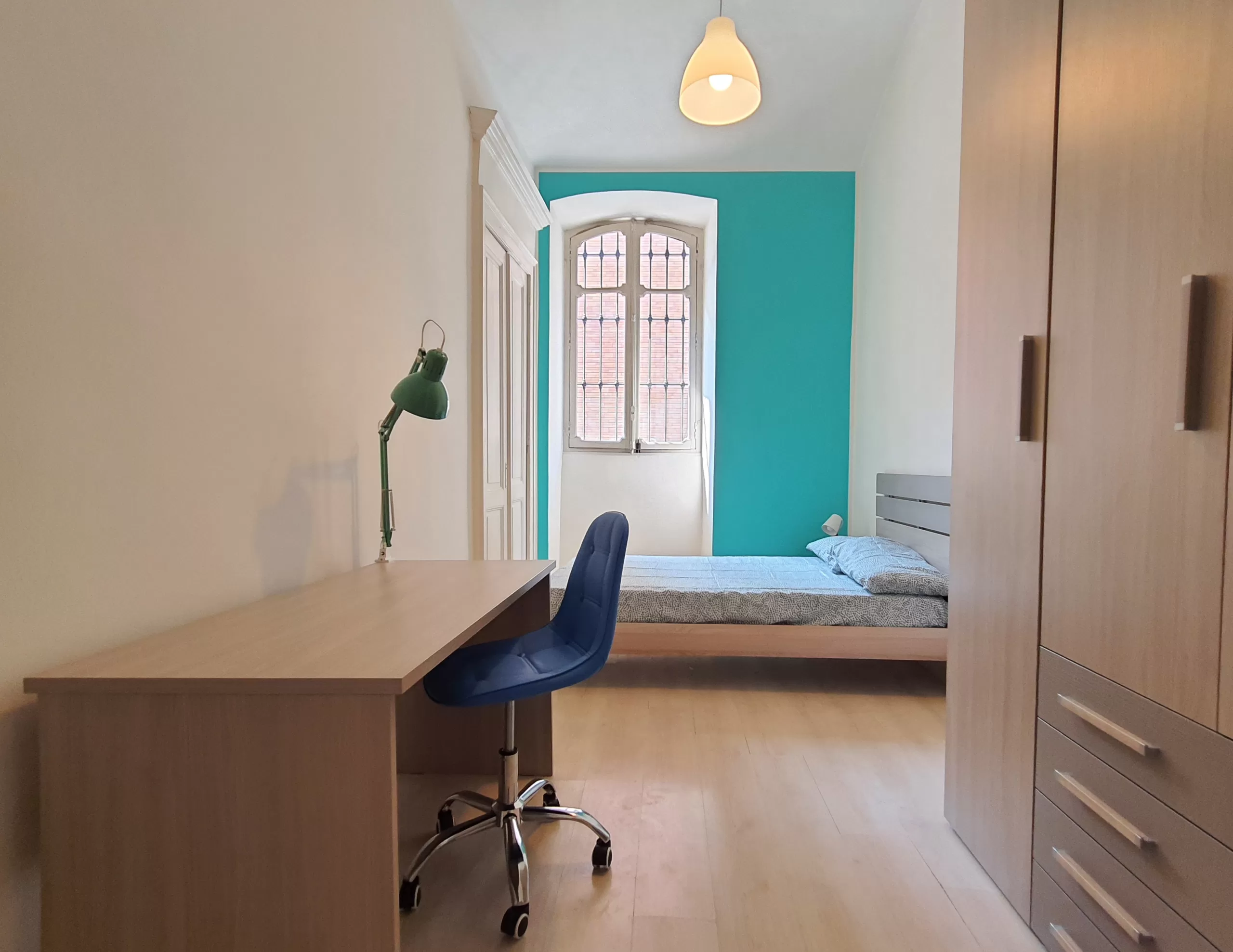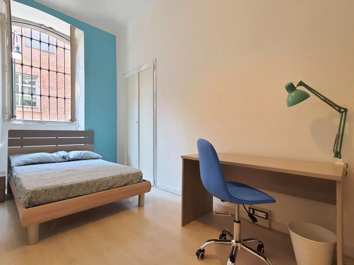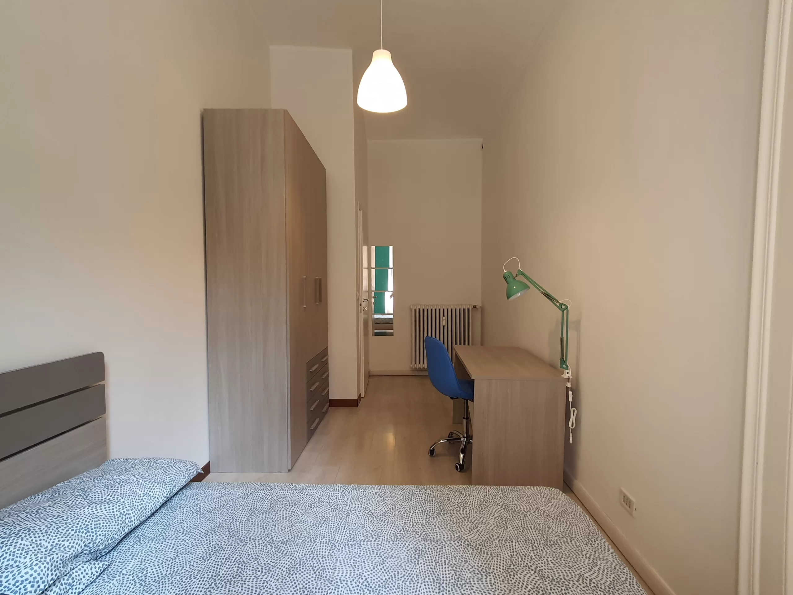 Ogni camera è singola, privata e dotata di tutti i confort necessari: lampada da comò, scrivania, sedia, lampada da tavolo, cassettiera, libreria, armadio 4 ante, specchio, kit letto (lenzuola, federe, cuscini, coperta e ciabatte da camera) e kit bagno (asciugamano grande, medio e piccolo).